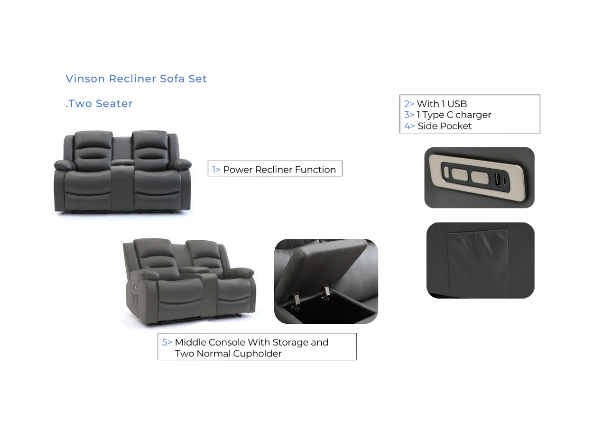 Transform your living space into a sanctuary of luxury and comfort with the Vinson 2 Seater Electric Recliner Sofa. This exquisite piece of furniture combines sophisticated design with plush materials and innovative technology to redefine relaxation. Picture yourself sinking into sumptuous cushions upholstered in premium Aire leather, soft to the touch and durable for long-lasting use. With just the press of a button, you can effortlessly recline into your preferred position, making it ideal for cozy movie nights or unwinding after a long day. The sleek, modern lines and elegant finish enhance any room's sophistication, while the reinforced frame ensures lasting stability and support. Upgrade your lounging experience with the Vinson 2 Seater Electric Recliner Sofa, ensuring every moment spent on it is one of true comfort.