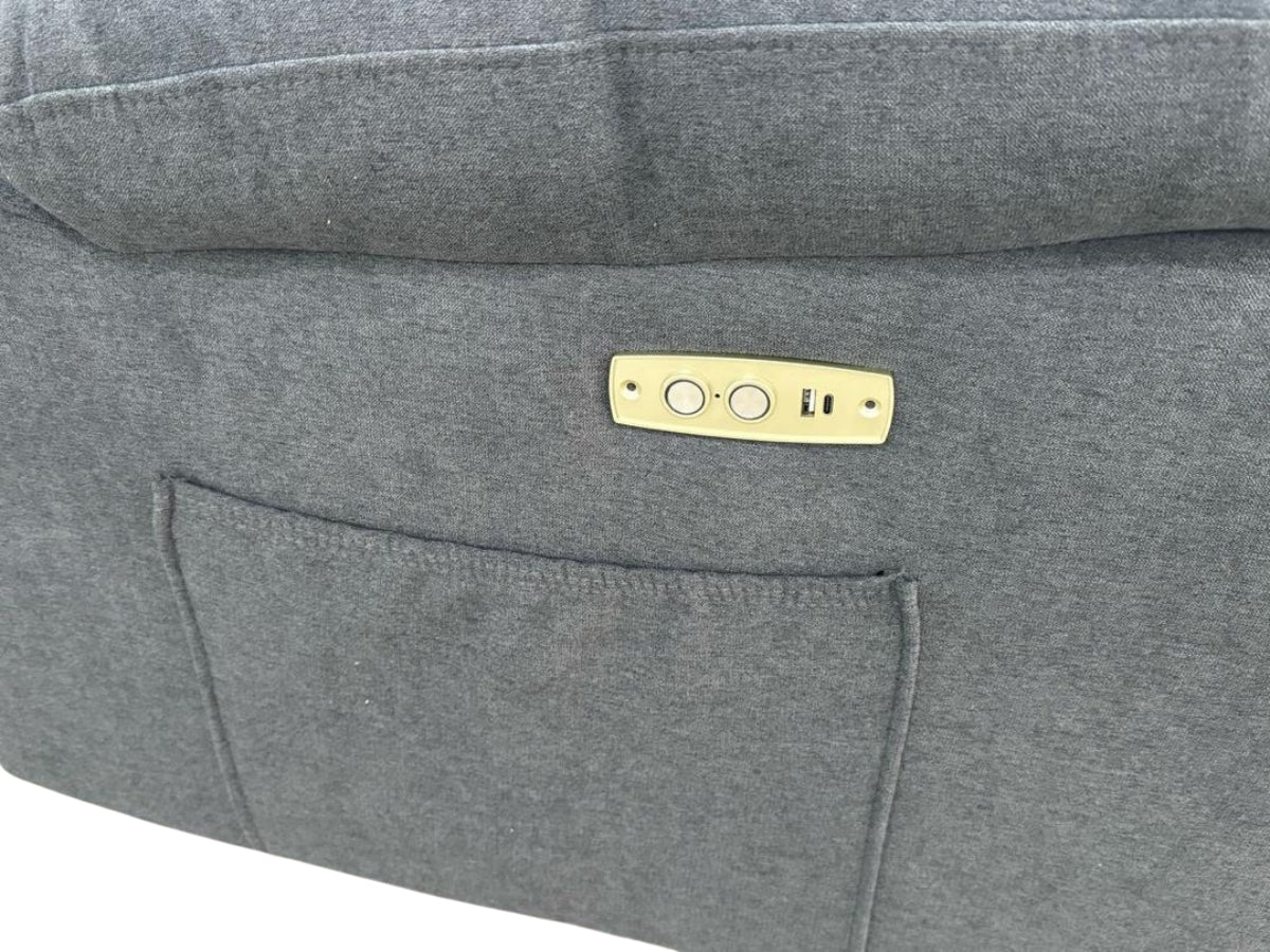 The Napoli Grey Fabric Electric Recliner 3 Seater Sofa combines modern design with comfort. Covered in soft grey chenille fabric, it features thick foam cushions that retain their shape. Each seat has deep channels to support the body, while a pull-down centre panel reveals cup holders and hidden storage for convenience. Built on a sturdy wooden frame, this sofa is designed for durability and features USB-C chargers for device connectivity. With a simple button press, you can recline and relax, making the Napoli an ideal addition to your living room for a cosy retreat. Transform your home with the Napoli Grey Fabric Electric Recliner 3 Seater Sofa.