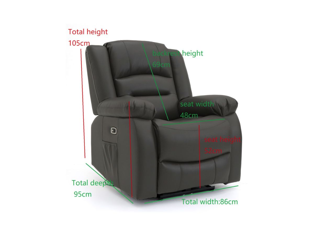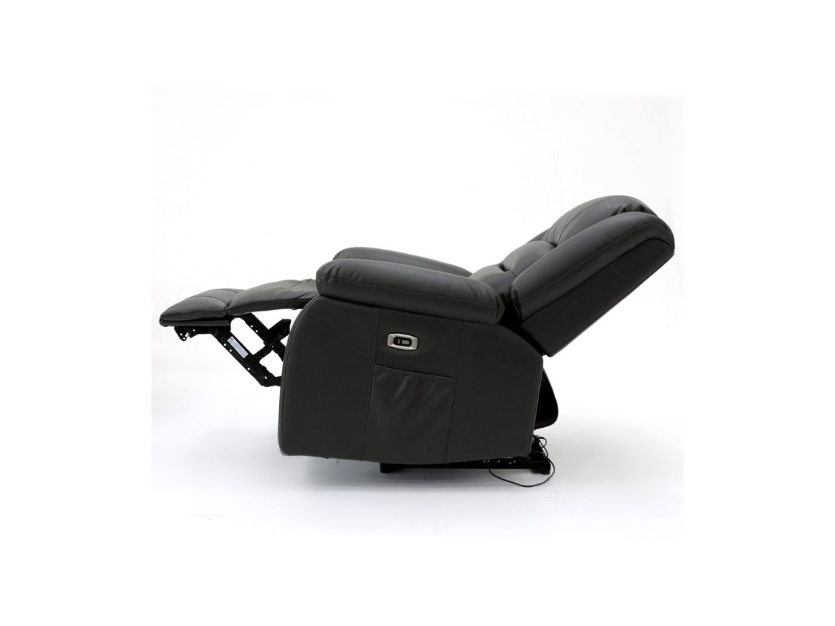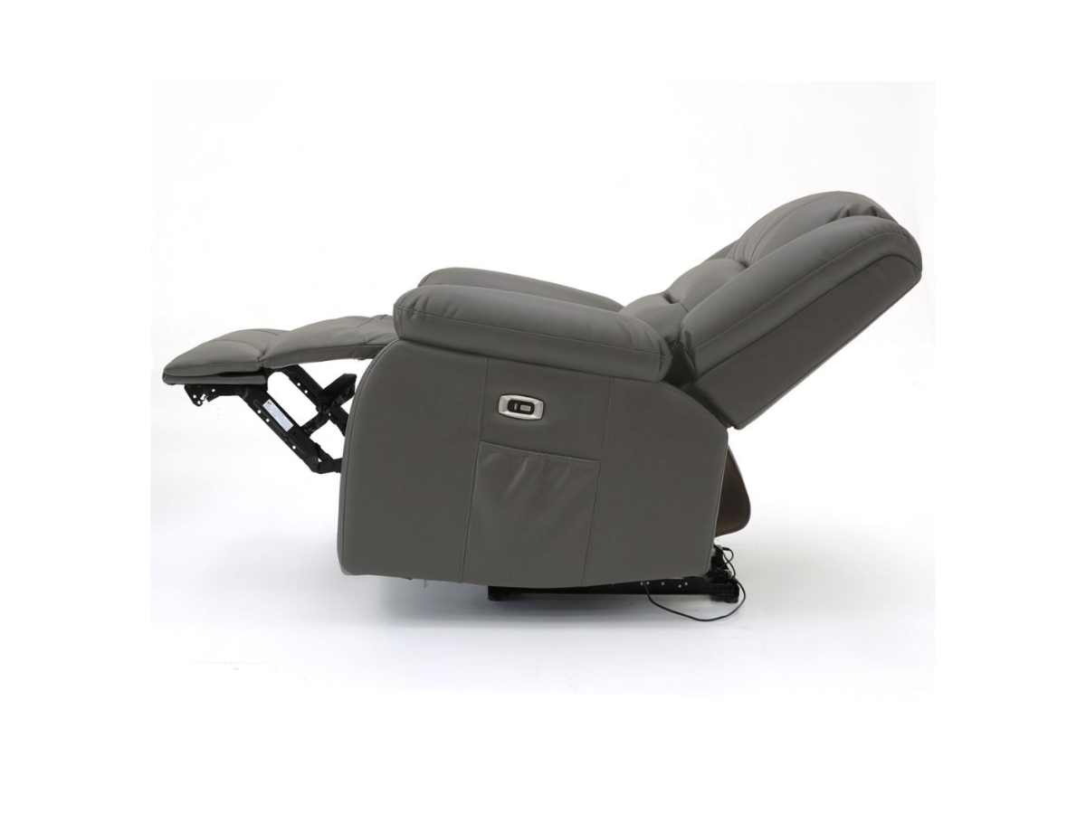 The Vinson Electric Recliner Armchair in Aire Leather combines modern technology with luxurious comfort. Experience effortless relaxation with its smooth power reclining function, activated at the touch of a button. Upholstered in premium Aire leather, this sophisticated armchair features plush cushioning that contours to your body for ultimate support. The thoughtful design includes convenient tech integration with a built-in USB port and Type-C charger, eliminating the need to get up to charge your devices. A discreet side pocket provides handy storage for remote controls, magazines, or other essentials. Perfect for contemporary living spaces, this electric recliner armchair offers both style and functionality for those seeking premium comfort with smart features.